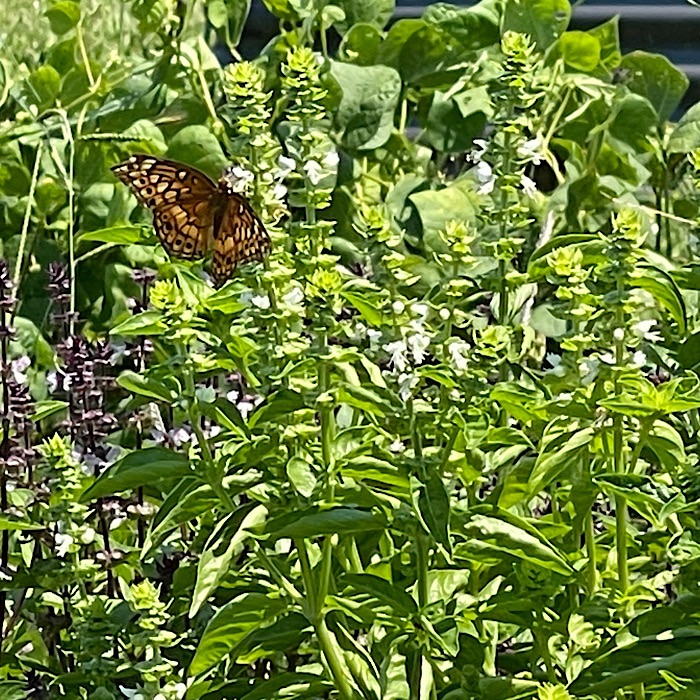 I saw this beautiful Monarch butterfly feeding on the red clover growing in the pepper buckets.