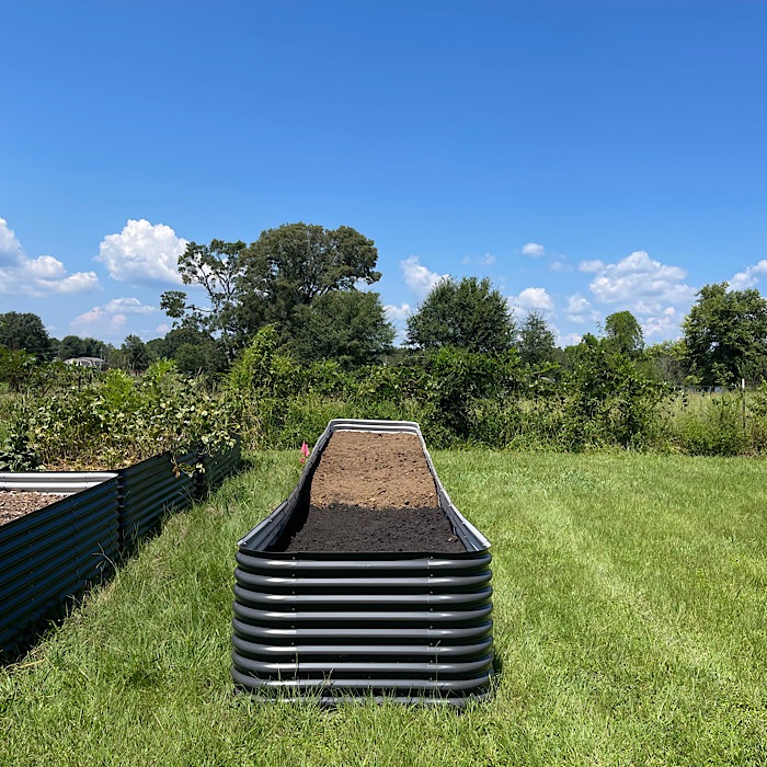 We went back outside in the heat and moved another cart of dirt into the garden bed. Bruce finished adding a layer of the bagged dirt. That was enough outside work for the day. We were so hot and sweaty. Bruce and I were happy to hop into the shower and get cleaned up.