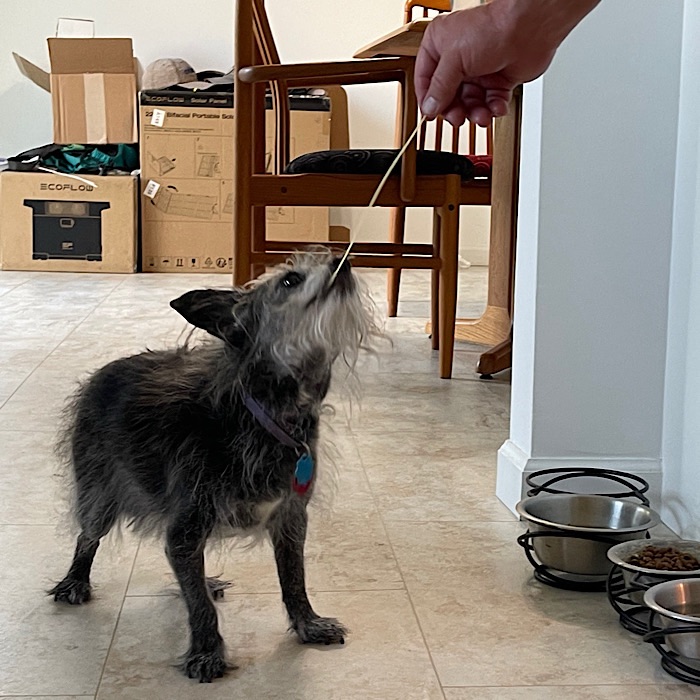 Nox loves eating angel hair pasta. Sometimes, we’ll give her a strand or two without any sauce.
