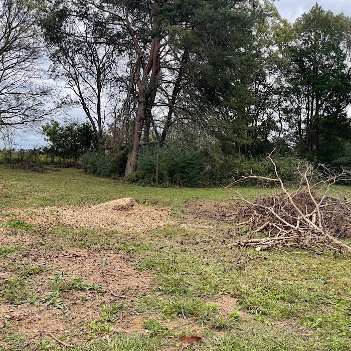 Bruce made a huge dent in the branch pile. Bruce took the before-and-after pictures below.