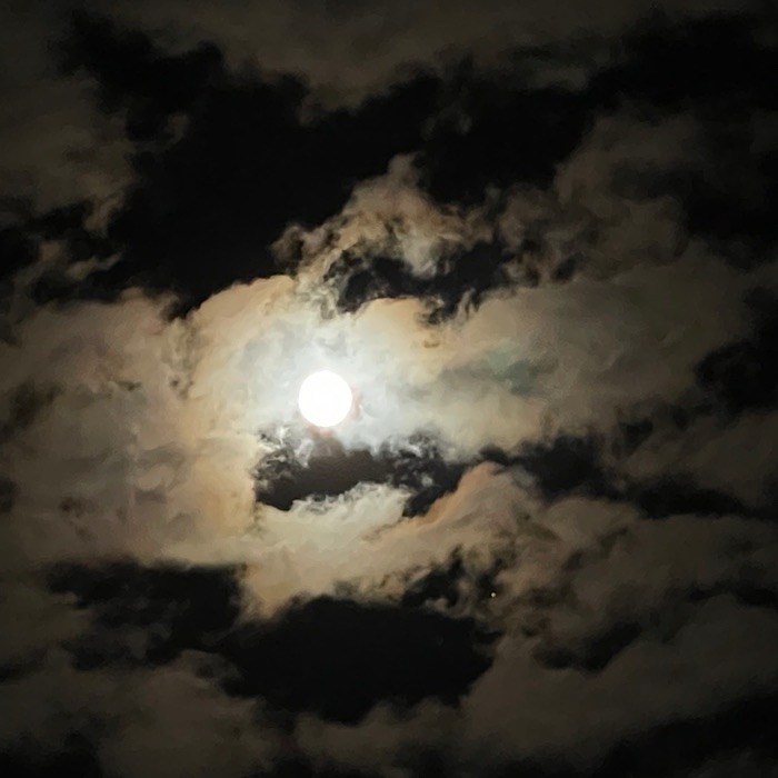 When we took Nox outside for her nightly walk around 9:00 pm, the moon was brightly shining through clouds. I was surprised at how well these pictures came out.