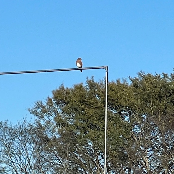 I spotted a bluebird on the top of the tomato trellis.