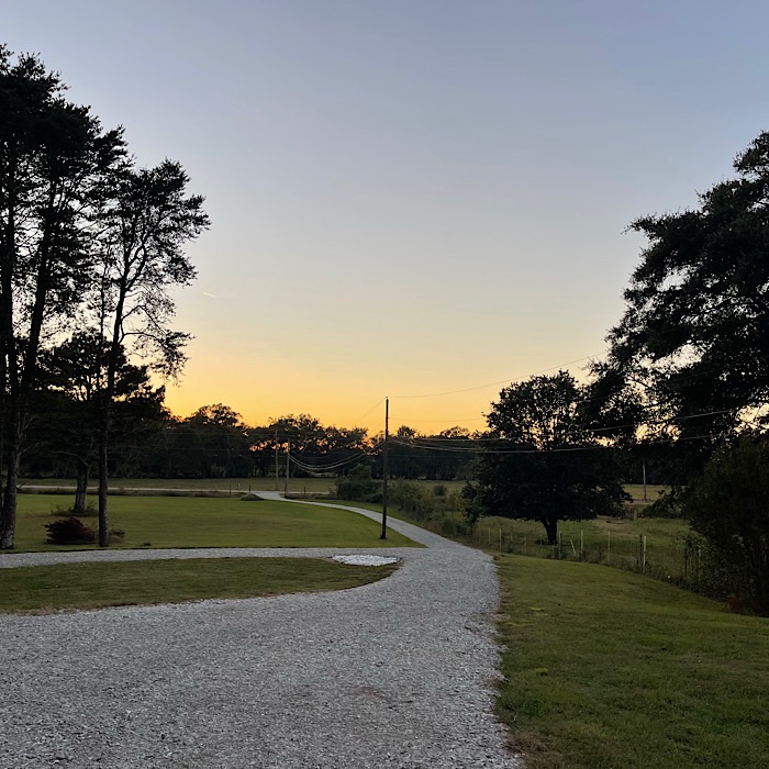 On Saturday (October 18), Nox needed to go out at 4:30 am. On the horizon, the moon was an orange sliver through the pine trees. The moon didn’t come out clearly in the picture, but you can get the idea of what I saw.