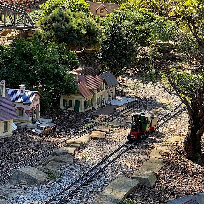 I was delighted by the train garden! I am not sure why they have dinosaurs in the train garden. It did make me laugh.