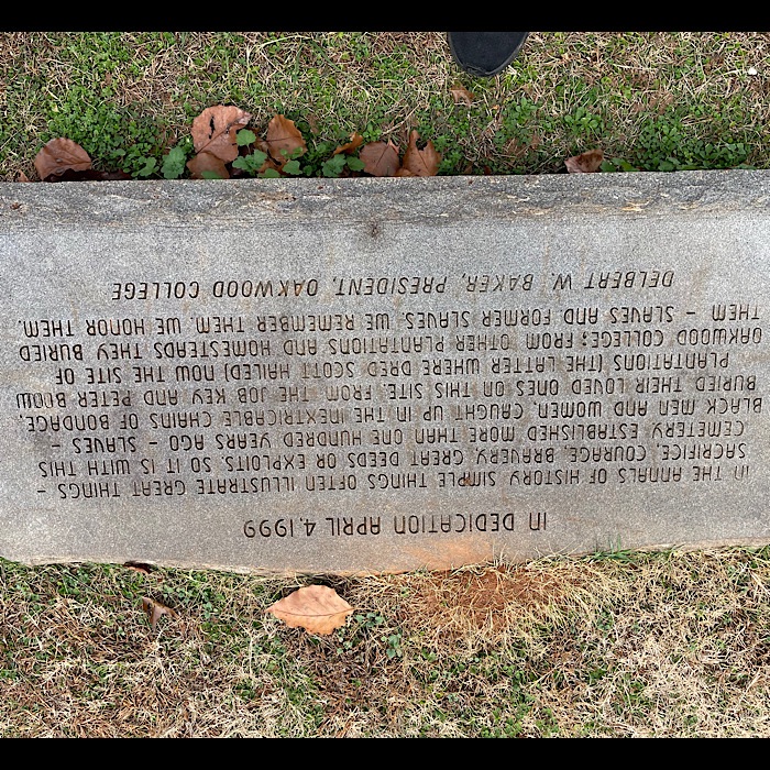 Yesterday (November 19), we met up with a friend for lunch in Huntsville, AL. We had a great time talking. He had just retired the week before. He was telling us about how strange it was. I agreed with him. We talked about it for a while. I told him my experience with retirement, while he described his experience so far. Once we realized the restaurant was closing, our friend suggested we go see the Oakwood University cemetery. He mentioned there was a slave cemetery.