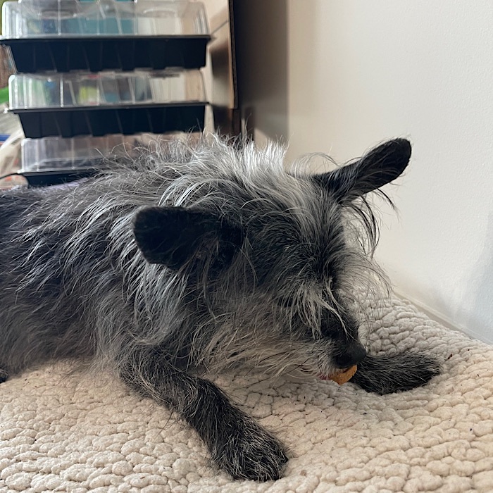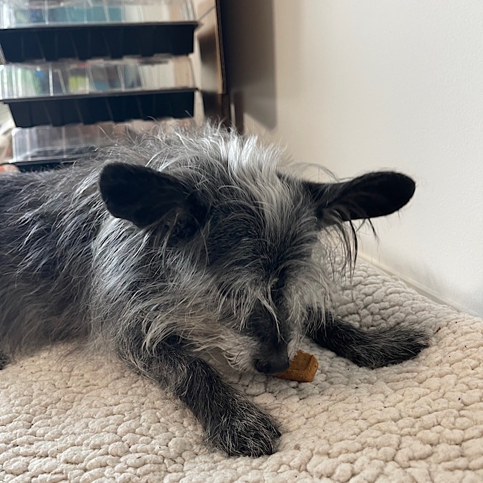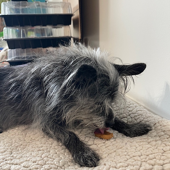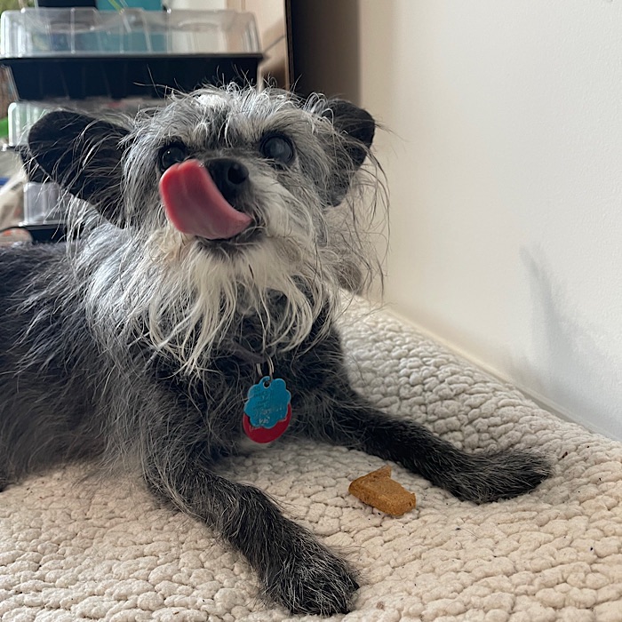 “Thank you, Tom and Reiko. These are the best treats ever! Tom, I love you almost as much as Dog Mom and Dad. You can be my dog uncle!