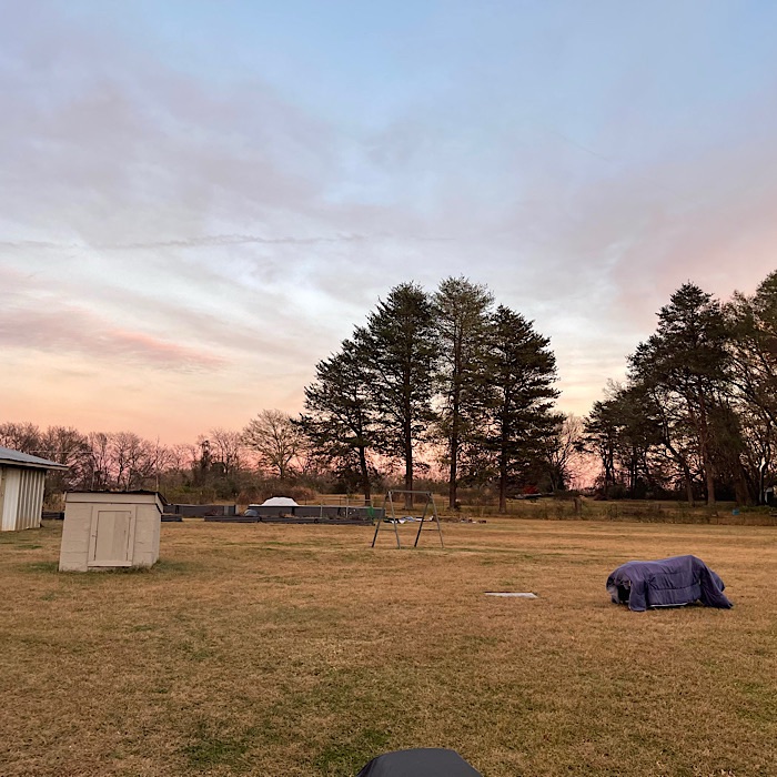 In the evening, Bruce and I covered the radishes and Japanese mustard greens to keep them safe.