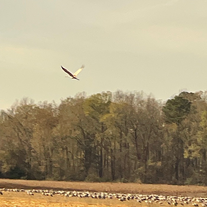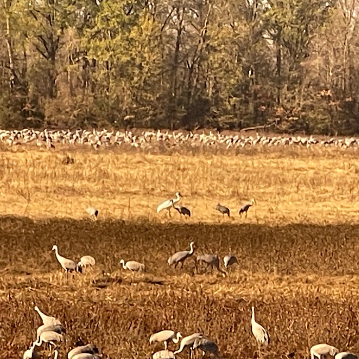 It was an amazing experience for us. I was so excited to see the cranes. We lucked out big time that we got to see the whooping cranes walking around the sandhill cranes. The sheer number of sandhill cranes was almost unbelievable. It is hard to believe that 10,000 more are coming in January!