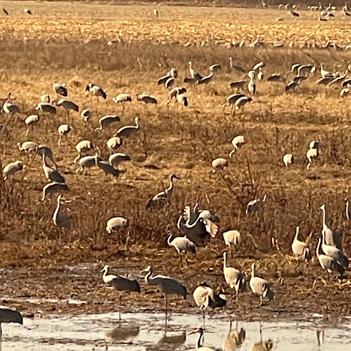 We went to lunch and enjoyed the BBQ with our friends. We enjoyed hanging out and eating good food. Bruce suggested to our friends that they might enjoy seeing the cranes. They thought that sounded fun, so they followed our car to the Wildlife Refuge.