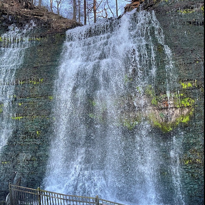 We walked along a TVA trail to see the Wilson Dam Waterfall. The only thing the waterfall has to do with the dam is being close to it.