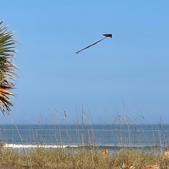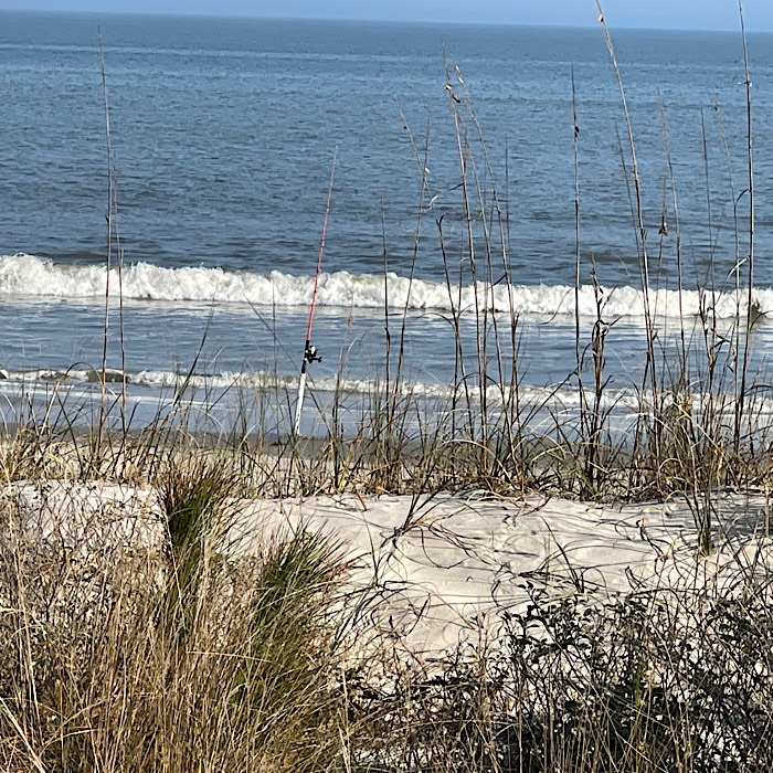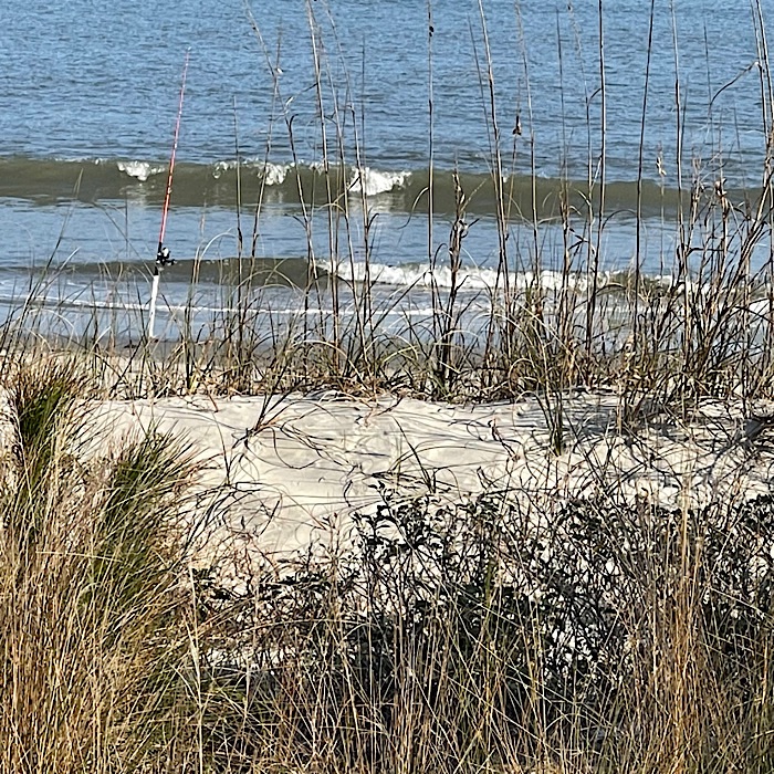 On December 28, 2025, with the drains not working, I walked to the public toilet on the beach path. On the way back, I admired the small waves crashing onto the beach. A fisherman had set up several fishing poles. Someone was flying a kite. I stood and watched the kite for a while. My soul was refreshed.
