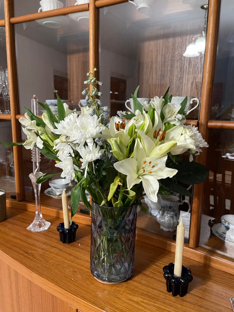 Bruce and his family found comfort in each other’s company. The various family members cooked or prepared food for dinner and breakfast. They left their dad’s, grandfather’s, or great-grandfather’s chair empty. On the placemat, my sister-in-law placed a glass of his favorite drink, scotch and soda water, along with a burning candle. Bruce felt it was a beautiful gesture of remembrance.