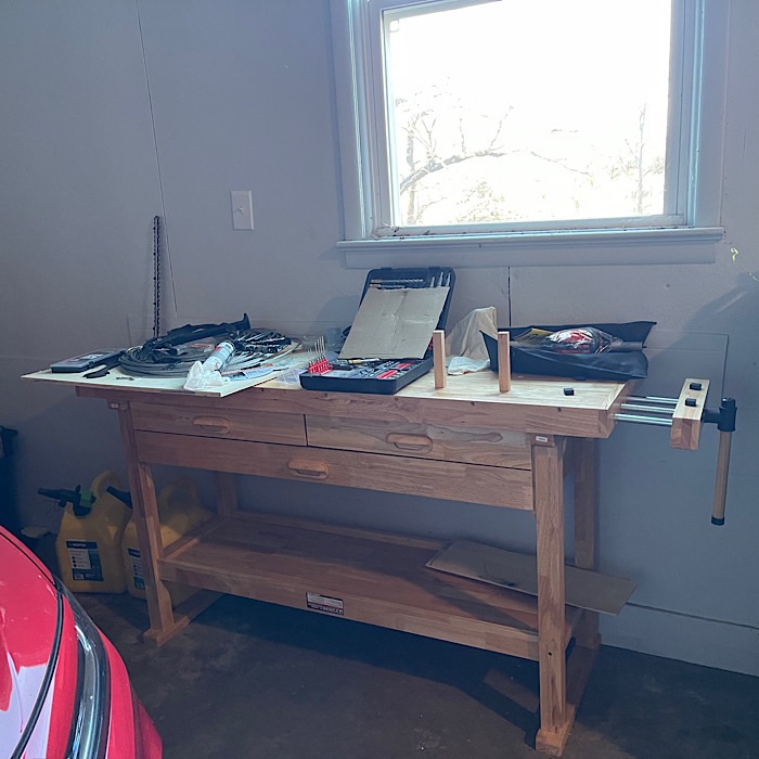 We were able to get the front for the long drawer on the workbench earlier in February. Bruce and I put the drawer together on February 6.