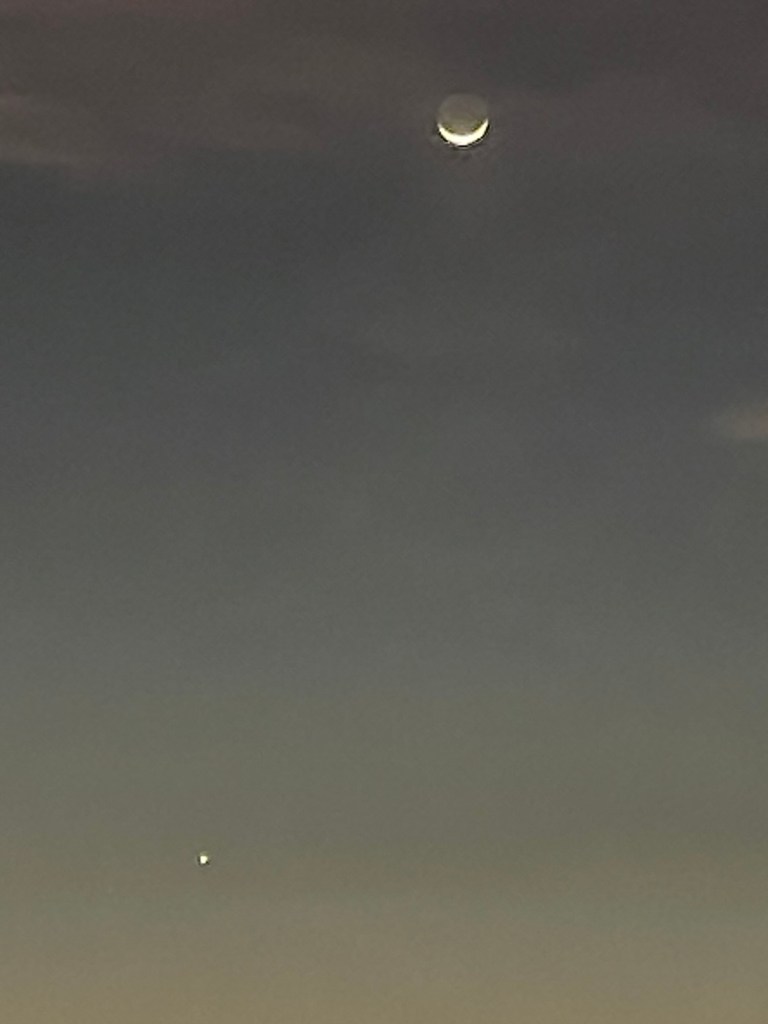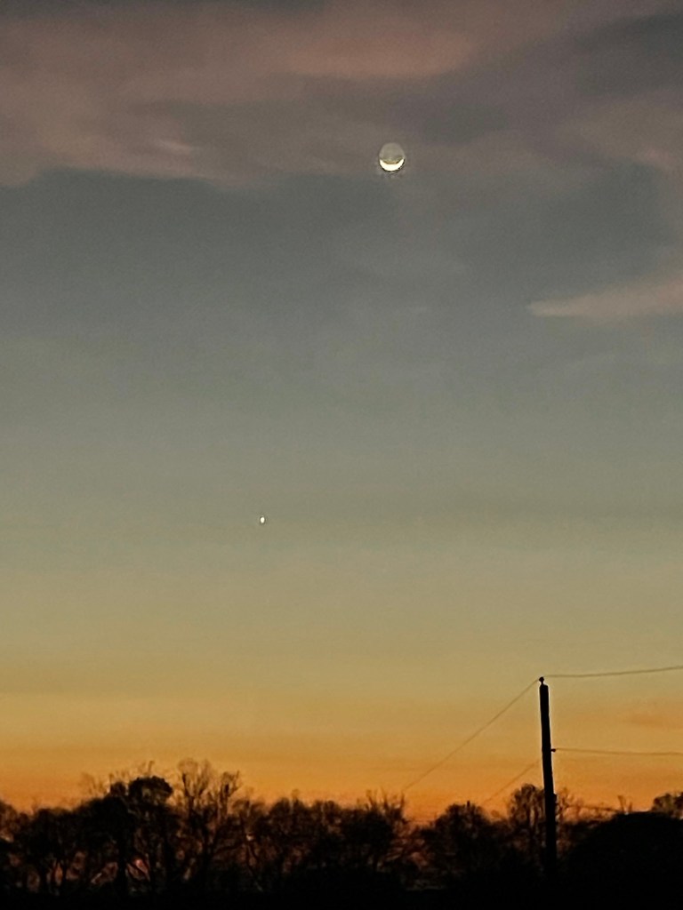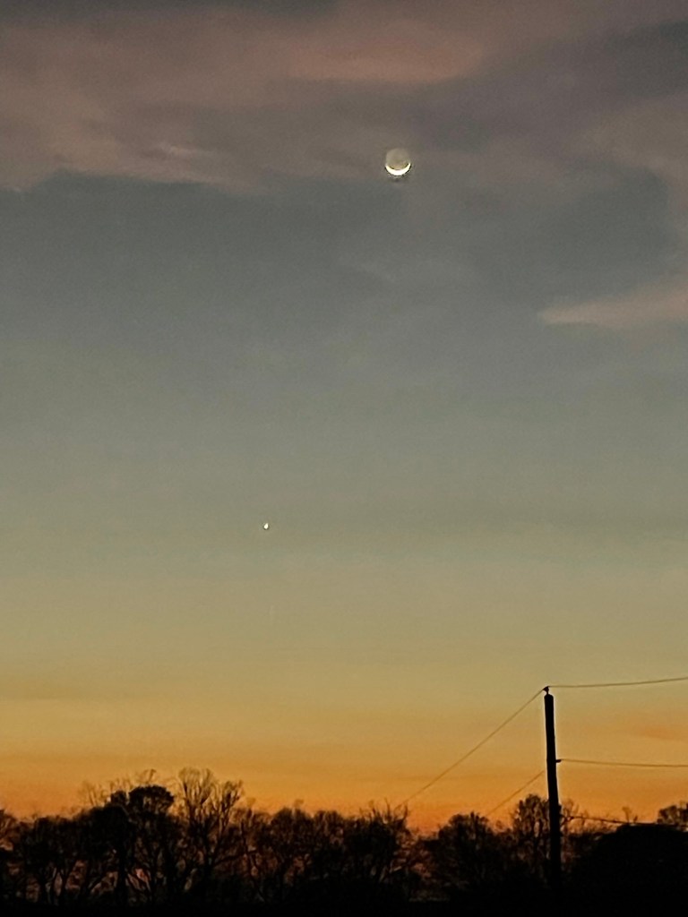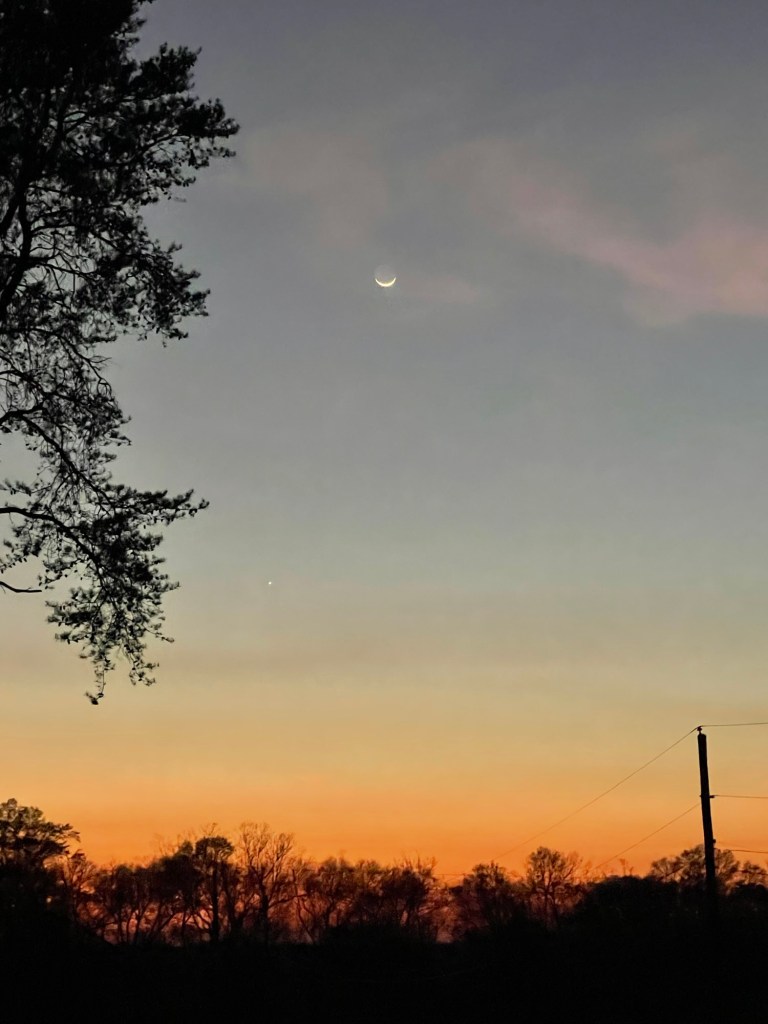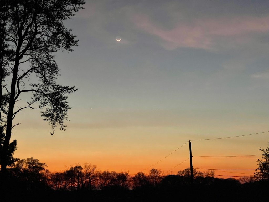 I meant to include this stunning sunset showing the moon and Venus from Friday (March 20). These are all pictures of the same sunset.