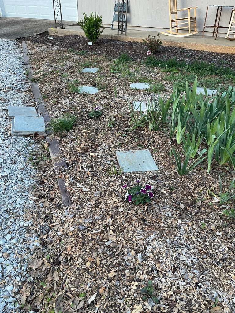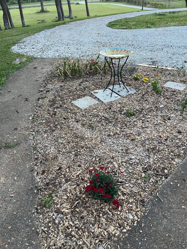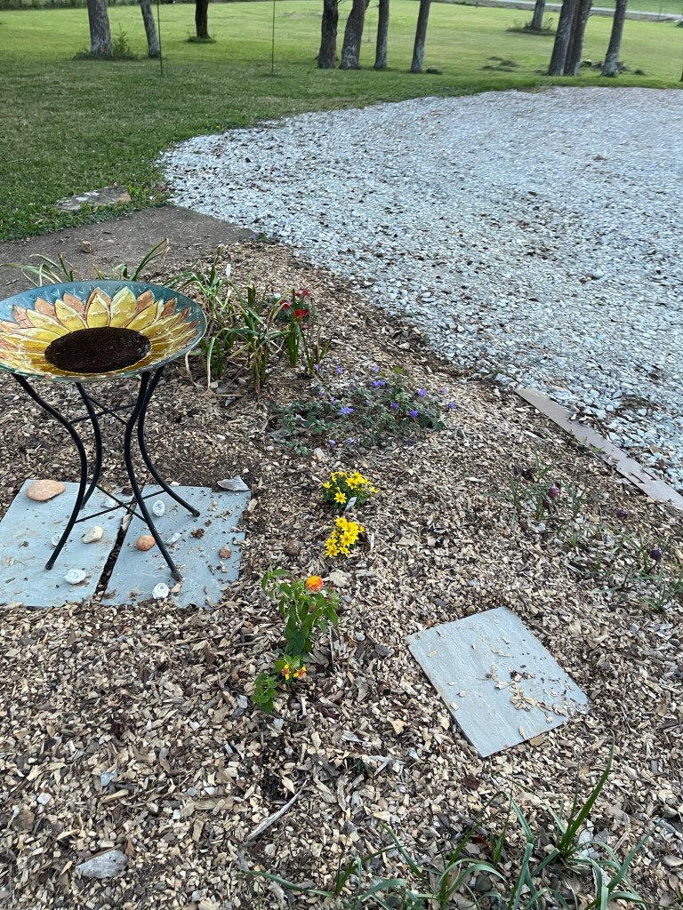 After a rest, I planted the flowers in the two front gardens. I want to make the birdbath garden a butterfly and hummingbird garden.