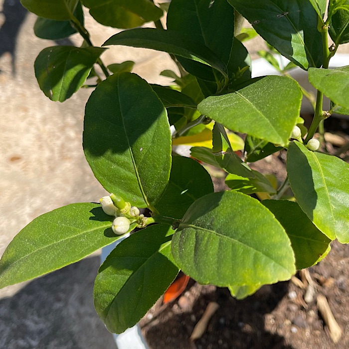 I took some pictures of my lemon tree with small lemons and flower buds.