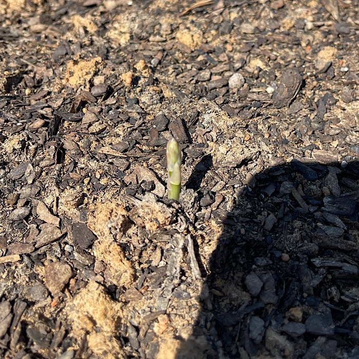 We didn’t do much in the garden. Bruce spotted an asparagus spear poking up.