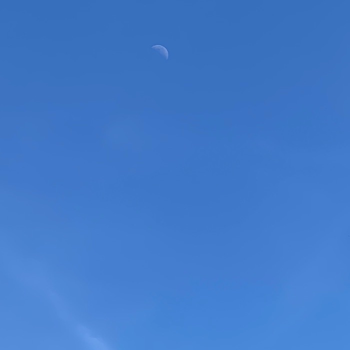 On Tuesday (March 24), the crescent moon was visible in the blue sky with white wispy clouds.