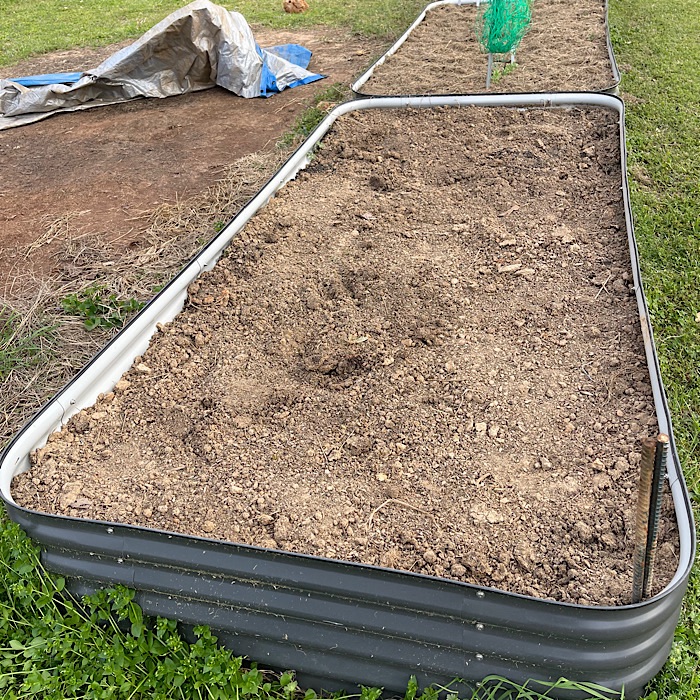 I moved the Bama Dirt pro mix into two beds. That was a lot of work. Bruce enjoyed sitting on the mower and racing around the yard, cutting grass.