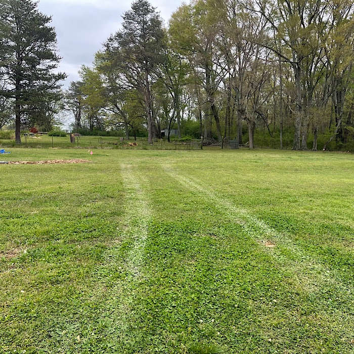 I am glad the ground was dry. The truck would’ve sunk in the clay and made a real mess of the yard. The truck just made tire tracks on the grass.