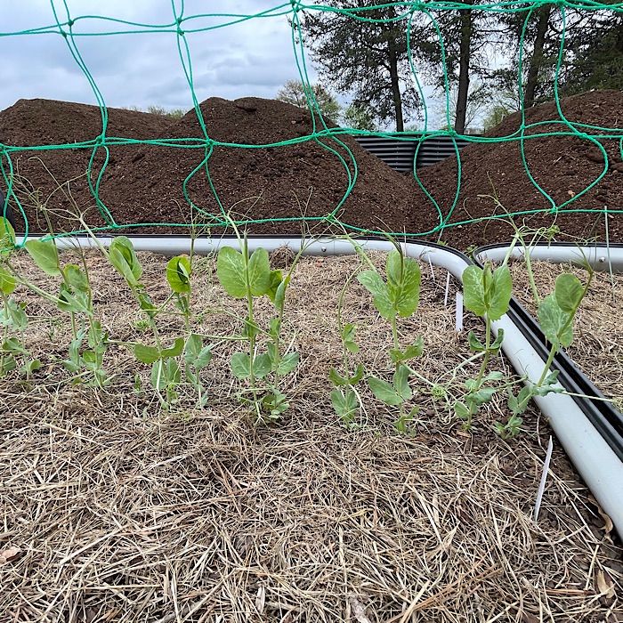 While I was looking at the dirt, I could see the peas grabbing on to the netting.