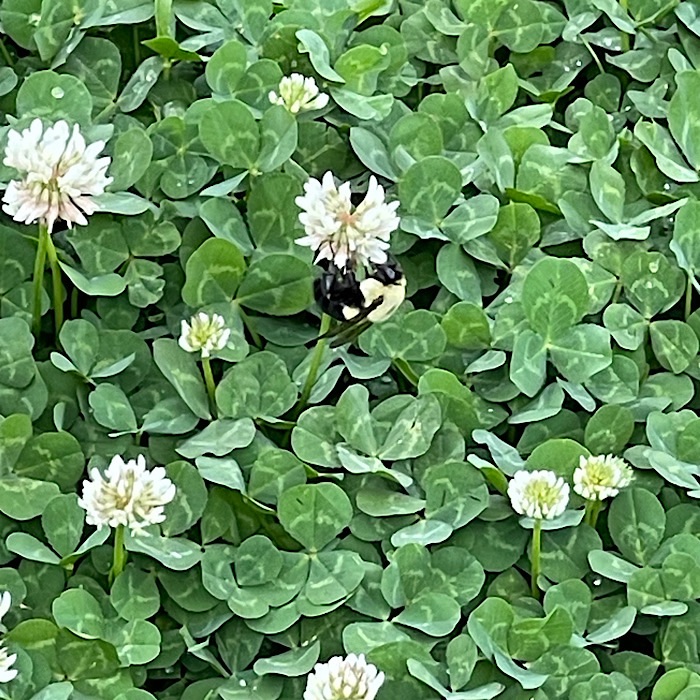 When I walked to the house to continue my housework, I noticed a bumblebee on a clover flower. I wasn’t able to get a bee bum picture.