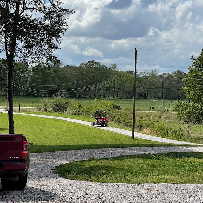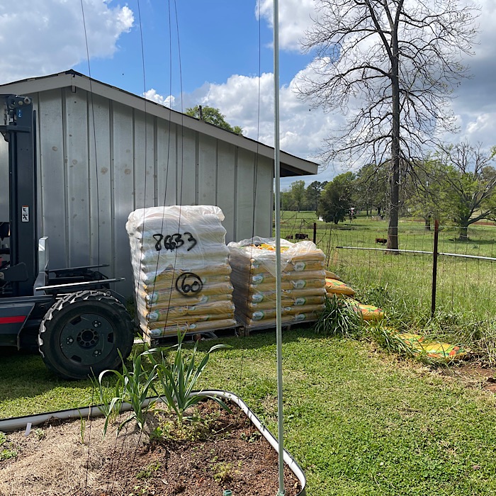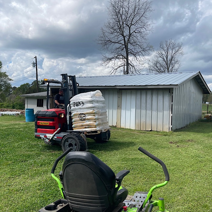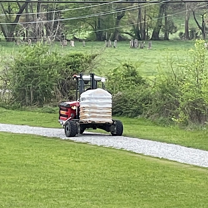 I didn’t realize we had the delivery until I saw the pallet lift in the backyard. I thought what the heck? I stepped outside and Bruce excitedly told me our Lowe’s dirt had arrived. The delivery driver was able to use the heavy-duty pallet lift to drive up the driveway, in the yard, and around the barn.