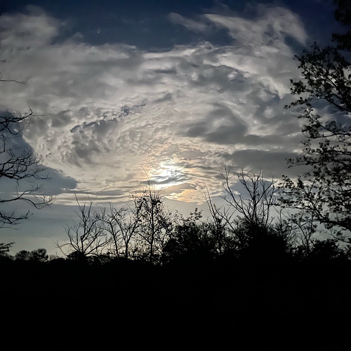 In the evening, I tried to take a picture of the moon shining through the clouds. The photo doesn’t do it justice.
