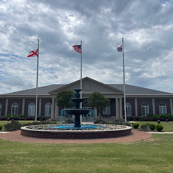 We walked to the post office from the library. We walked past the Muscle Shoals City Hall.