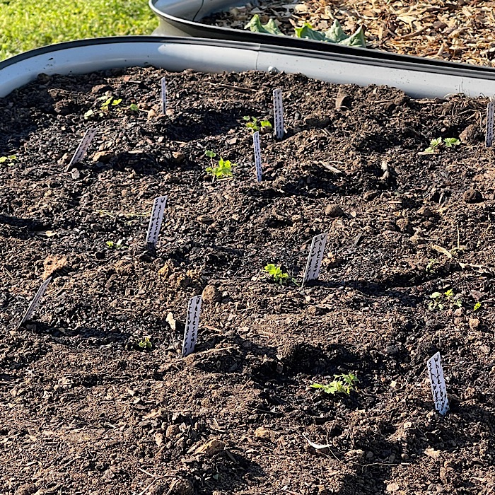 I transplanted the alpine strawberry plants that I had been growing in one of my seed starter kits. I have a white variety “White Soul” and a red variety “Mignonette”. I also transplanted a few wild strawberry plants I grew in the same seed starter kit. I am growing the plants in a raised bed so I won’t need to bend over to harvest the berries.