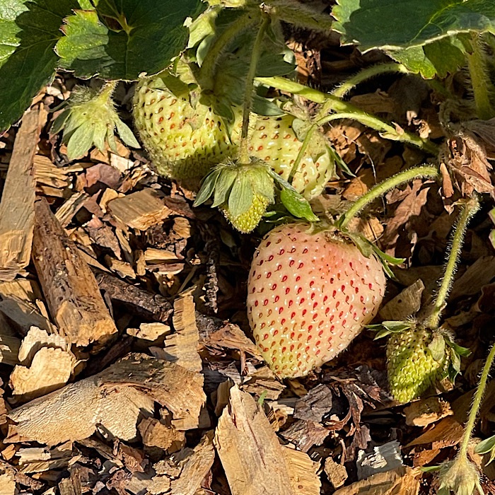 Alpine strawberries have a compact growth habit. They don’t produce runners, making them ideal for creating a 6 to 12 inch tall border. I used them as a border around my herb garden in the mid 90s. They make intensely flavored small 1/2 inch diameter berries and produce the berries all summer long. My daughter loved the berries so much that Bruce and I didn’t get very many berries.
