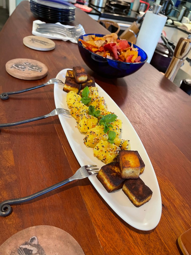 - 5:40 PM reheat Cumin spiced potatoes and Chana Masala